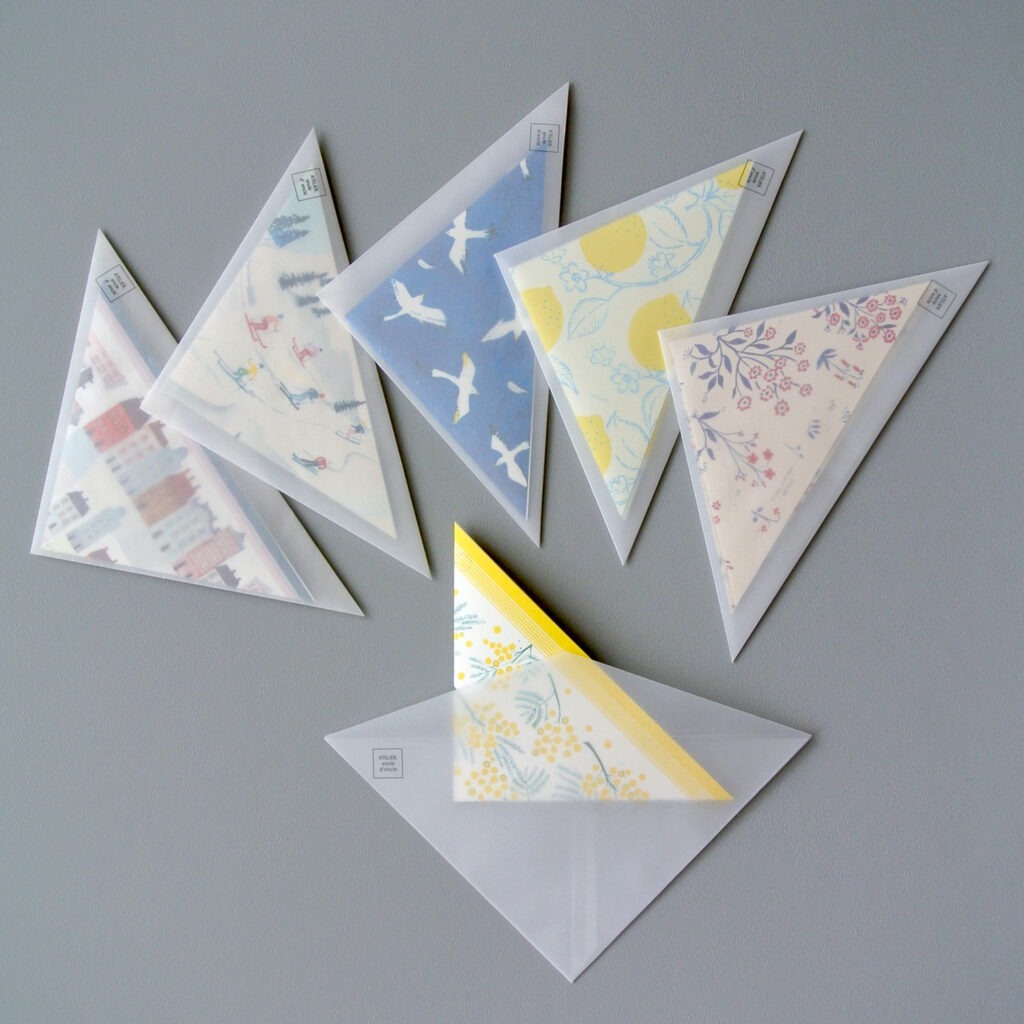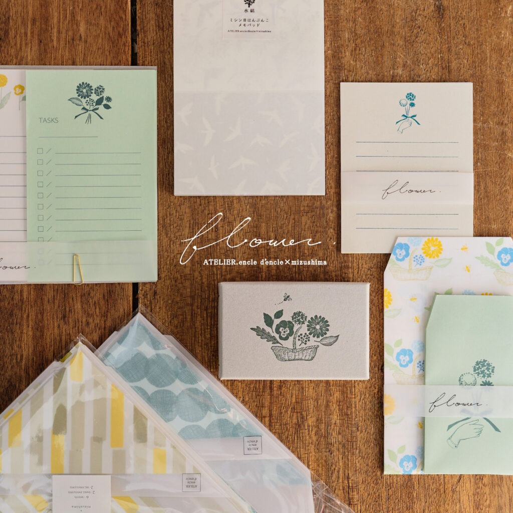 滋賀県琵琶湖近くのアトリエで、繊細でやさしいデザインの紙もの作りをされています。アトリエ名はフランス語の“インク”をもとにした造語で、ペンにつけた1滴のインクから無数の作品が生まれるようにという願いが込められています。