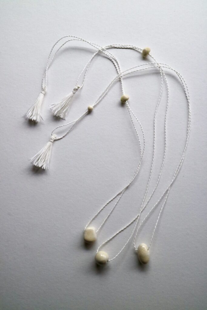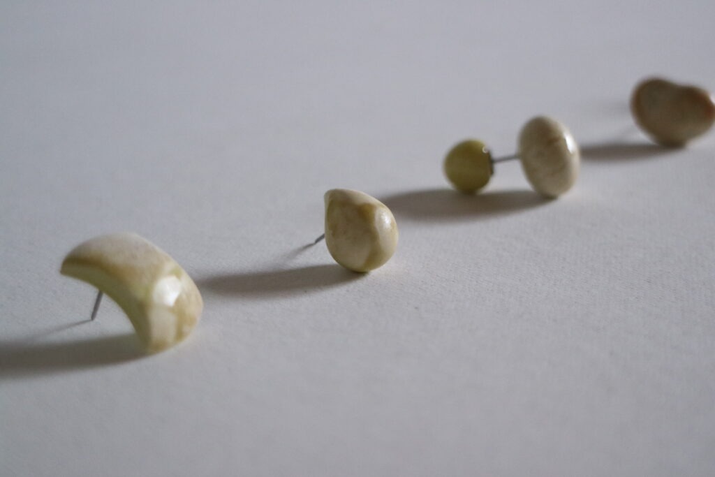 貝や石のような存在感を放つ陶磁器の装飾具や小作品。