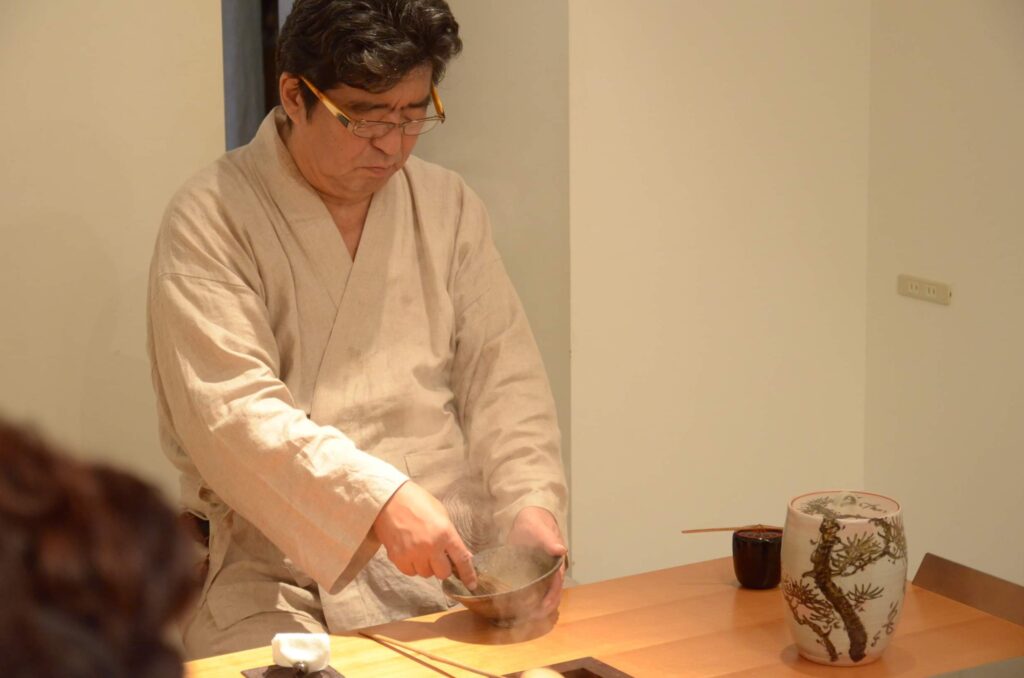 お酒とお食事を楽しんでいただいた後には、薄茶を気軽な盆点前(ぼんてまえ)でお出しします。