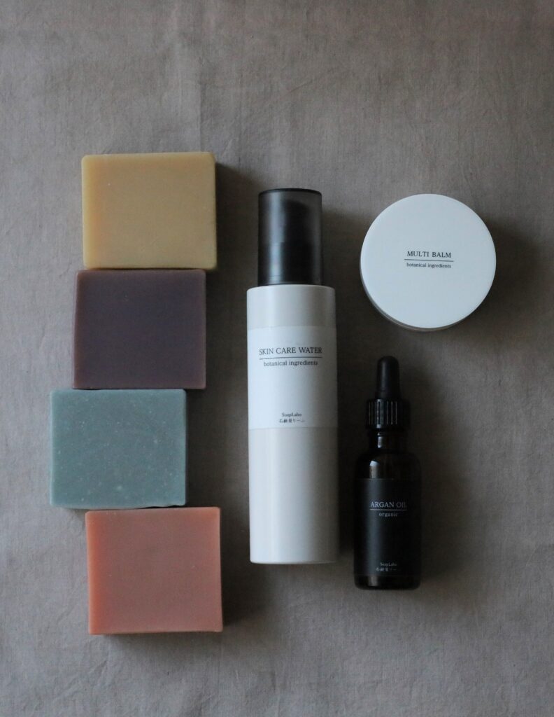 熱を加えないコールドプロセス製法で、顔・髪・体を洗える石鹸を、ひとつひとつ丁寧に手仕事で仕上げています。和漢植物の恵みをその特性にあわせてじっくりと引き出し、余分なものを加えず、天然原料だけを用いて1~2カ月かけて静かに熟成させた石鹸は、それぞれに個性があり、肌質や洗い上がりの好みに合わせて選べます。石鹸で洗い上げたあとの肌は、国産植物を蒸留した化粧水と植物由来の保湿オイルでシンプルにケア。原料となる植物の風合や精油の香りも愉しみながら、日々の暮らしに寄り添うスキンケアのラインナップです。