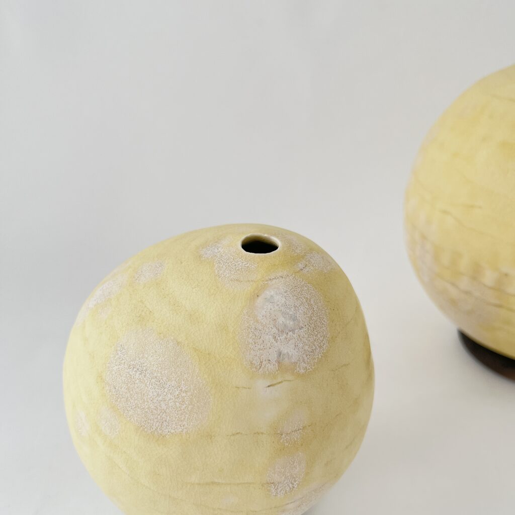 やさしい色合いとマットな質感で、心地よく静かな空間をつくってくれるような花入です。
