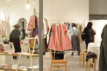今回は、たくさんの衣服や小物が届きました。ワンピース、シャツ、パンツ、スカート、ジャケット、ベスト、エプロン、巻きスカート、旅する茶碗、ティーマット、鍋つかみ など、ユミさんの手仕事を一同にご覧になれる機会となっています。