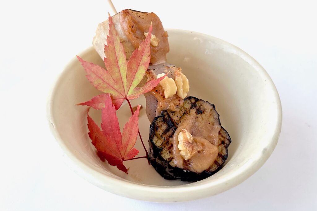 - ナス、こんにゃく、セレベスのくるみ味噌田楽