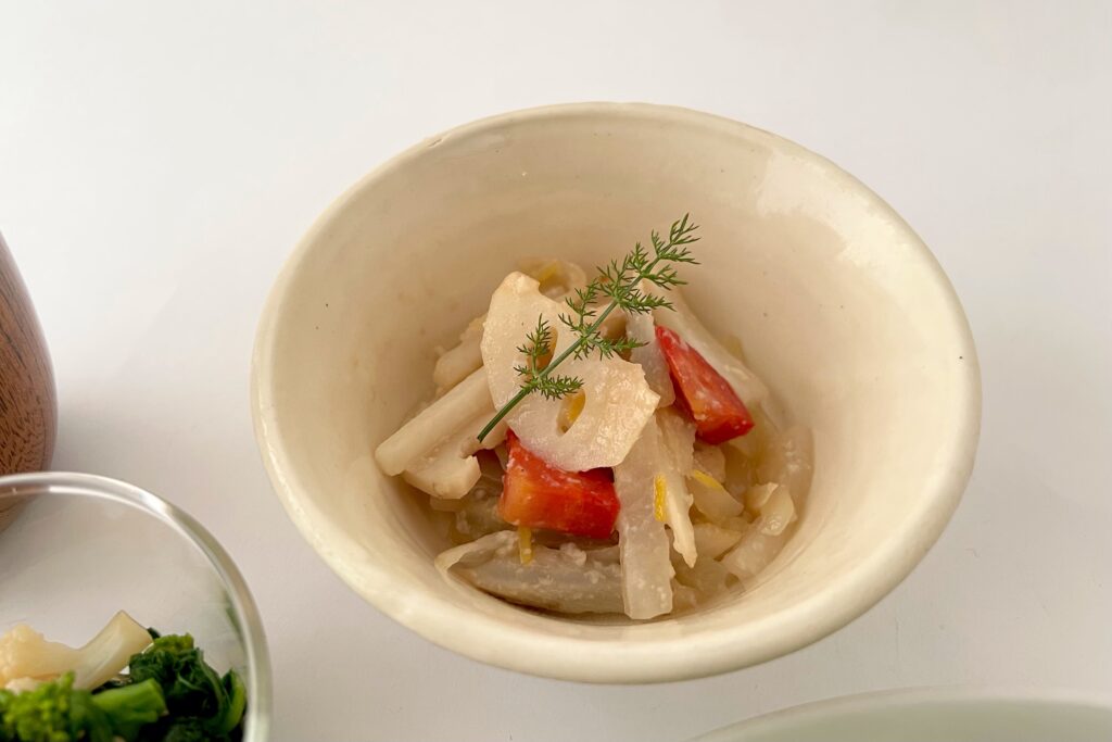 - じゃがいもと大根、ほうれん草のお味噌汁