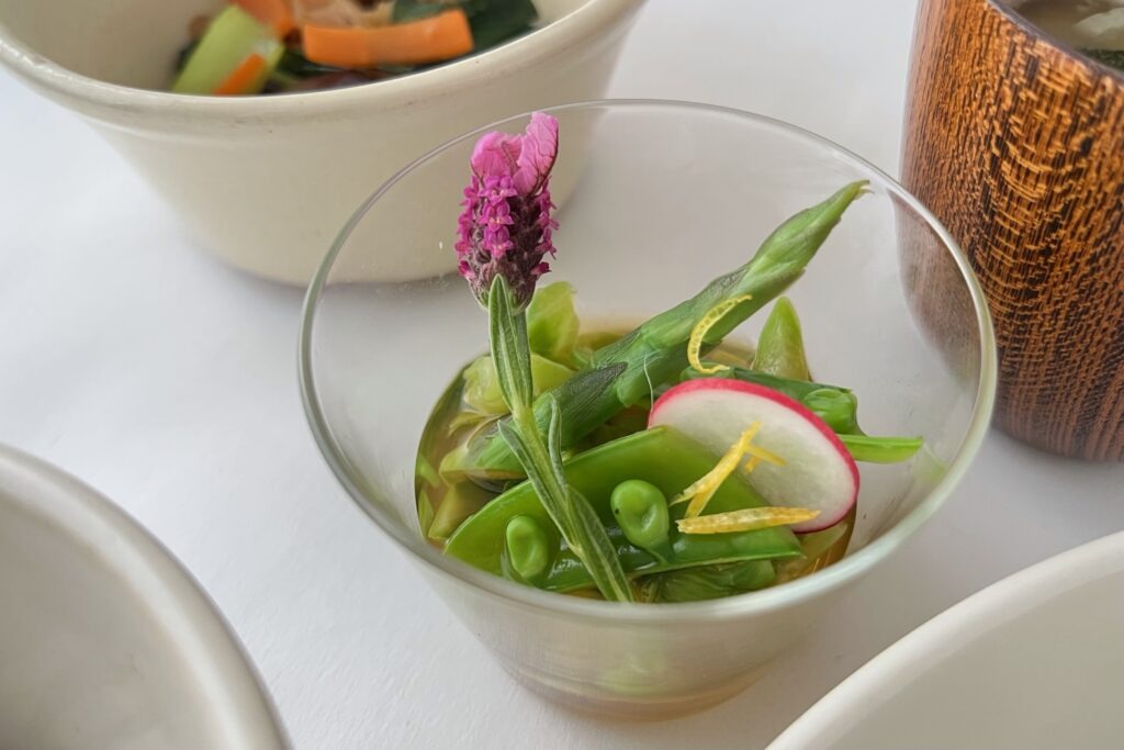 - 春キャベツと新野菜のお浸し レモンジュレ添え